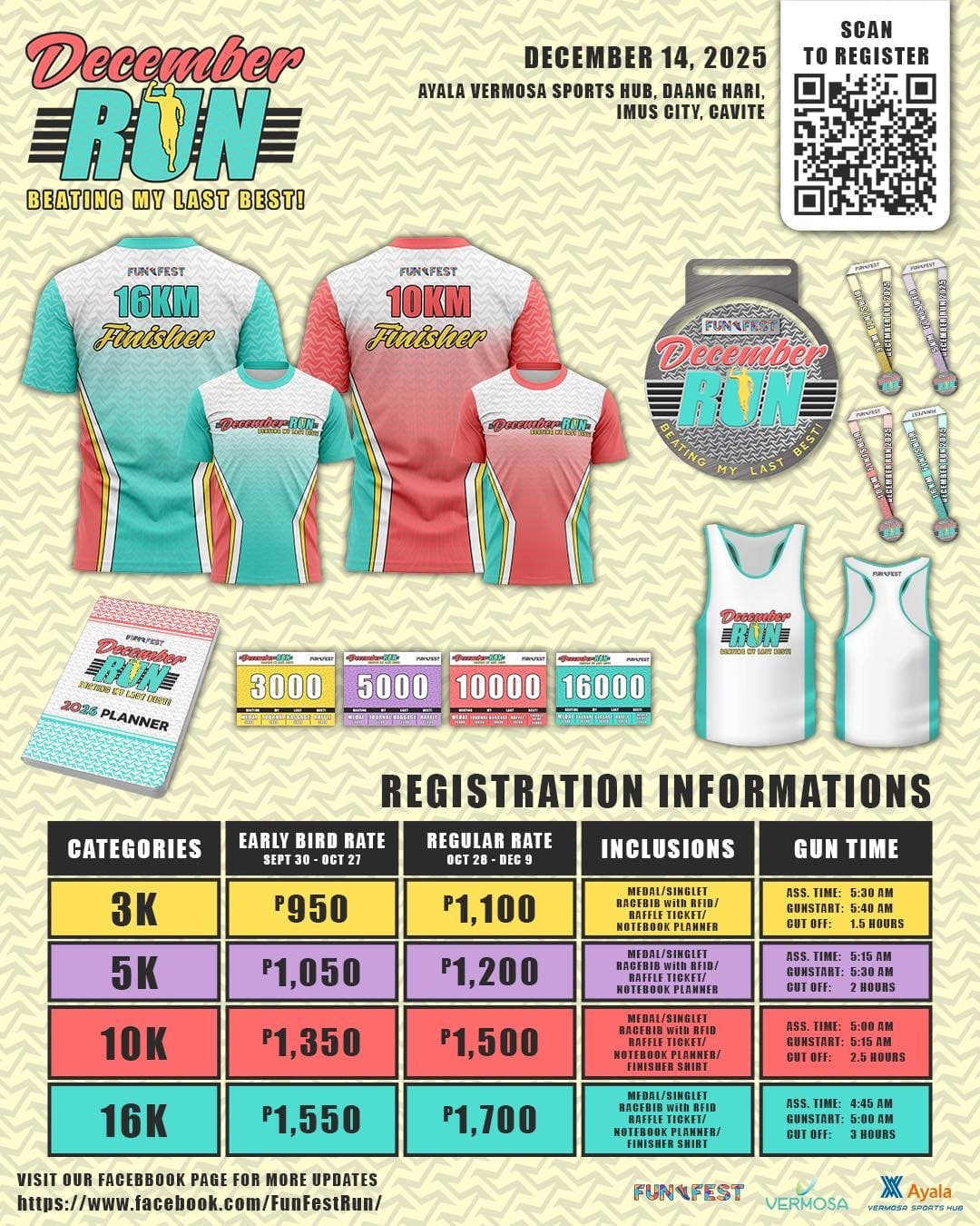 DISCLAIMER: Schedule and all information about Fun Fest December Run 2025 came either from research, or initially provided by the race & event organizers. Pinoy Fit Buddy does not guarantee the accurate listing of these events. Please contact the race / event organizers for updates and possible changes.