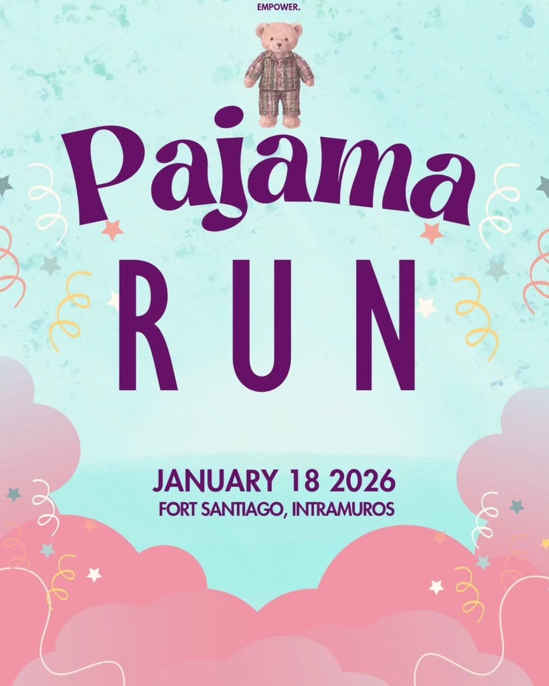 The most fun night is back! Get ready to run, laugh, and dream under the stars because PAJAMA RUN 2026 is happening on January 18, 2026, at Fort Santiago, Intramuros! Put on your comfiest pajamas, grab your friends, and join us for a night of running, music, lights, and pure good vibes! More details coming soon!
