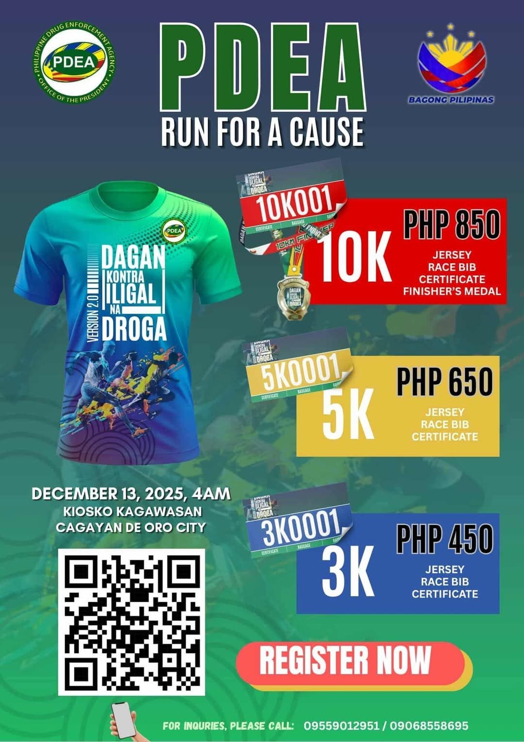 Last year, you ran with us and made a powerful stand against illegal drugs. This year, we’re taking it to the NEXT LEVEL! Let’s make this year’s run bigger, louder, and more impactful as we continue the fight for a drug-free Philippines! Join us once again and run for a cause that matters! Together, let’s keep the momentum going — PDEA RUN FOR A CAUSE: DAGAN KONTRA ILIGAL NA DROGA 2.O!