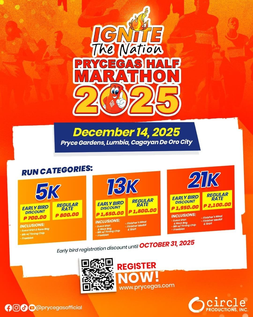 DISCLAIMER: Schedule and all information about Prycegas Half Marathon 2025 came either from research, or initially provided by the race & event organizers. Pinoy Fit Buddy does not guarantee the accurate listing of these events. Please contact the race / event organizers for updates and possible changes.