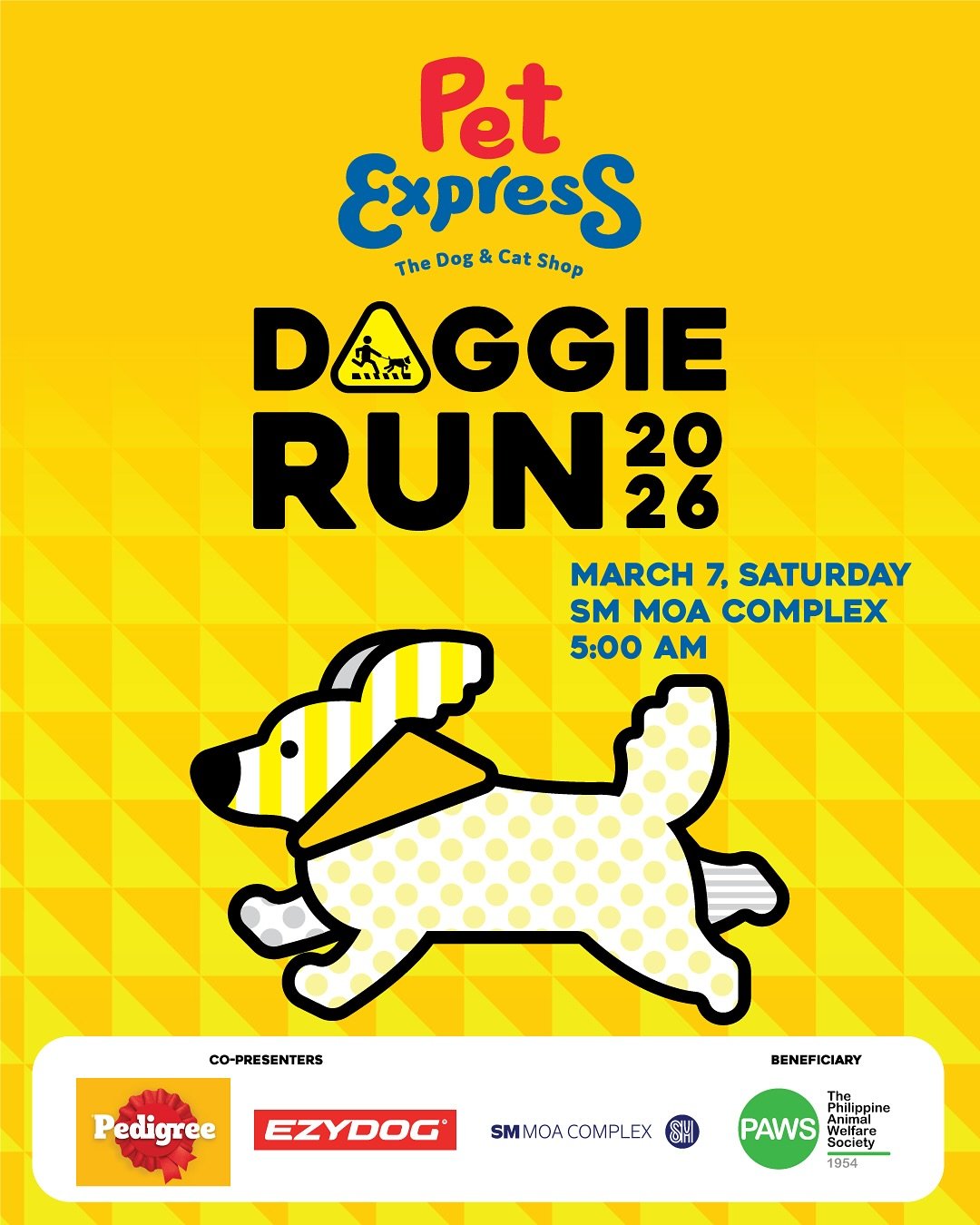 Pet Express Doggie Run 2026 will be on March 7, 2026 at SM MOA Complex in Pasay City.